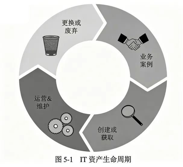 生命周期从识别新需求开始,此需求拥护者需解释关于新资产的风险和投资回报率。然后,将经过验证的需求提交给变更管理委员会,由不同的组织利益相关方(Stakeholder)针对获取资产的内容、方式和时间发表意见。资产管理的第三阶段也是最长的阶段:运营和维护(Operate & Maintain,O&M)。在资产投入运营前,IT和安全运营团队实施配置以平衡三个(有时是相互竞争的)目标:资产必须能执行满足获取目的的任何操作,必须能在不干扰或破坏其他任何内容的情况下执行该操作,且必须是安全的。(20章将讨论配置管理)最终,资产不再有效(就功能或成本而言)或必需。此时,资产退出了O&M并停用。这一举动会触发变更管理委员会的另一次审查,也可能导致确定新的要求,从而再次启动整个资产管理生命周期。