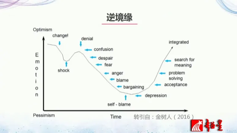 人的婚姻爱情也是计划性和偶然性交织进行的。台湾的金树仁教授呢他认为缘可以分为顺境缘和逆境缘,它把因果循环里面用一个缘字给它串在一起,我们通过缘达到了因和果之间,那么在职业发展过程中呢因就是你是一个什么样的人?果是产生一个什么样的结果?而中间呢也还是需要一个圆,圆分顺境圆和逆境圆。顺境缘我们好理解,就是职业发展中遇到一个贵人,获得一些良好的机遇,那么逆境源是什么呢?