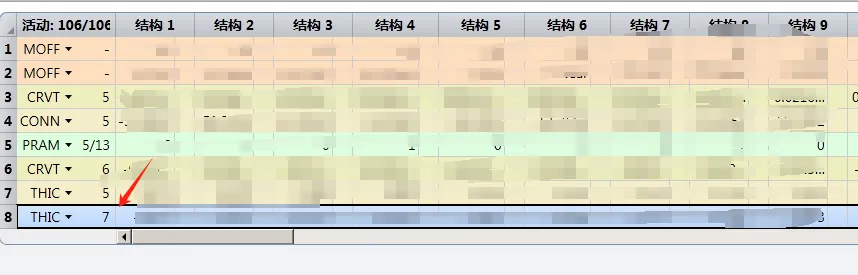 对第8行运算之后,不能复制红框里面的内容到多重结构编辑器,会对不齐数据。也不能只复制数据到多重结构编辑器,例如红色箭头指的位置。