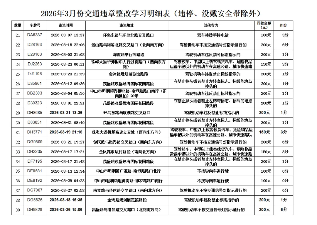 • 主动提醒前排+后排乘客系安全带,珠海交警重点严查后排不系,违者连带处罚。