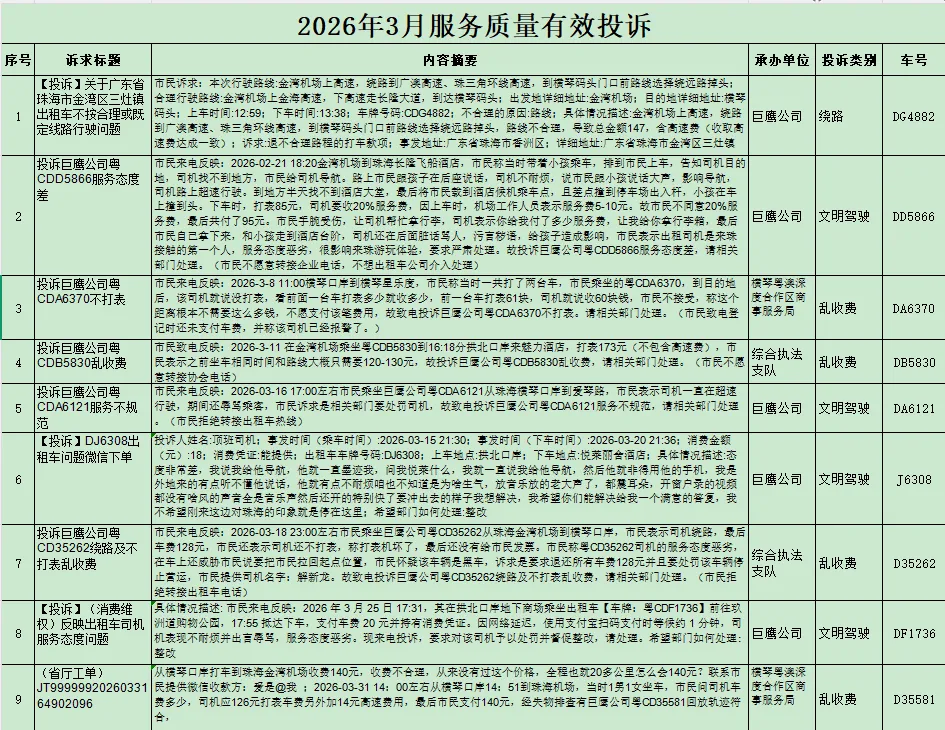 • 全程打表计费,不拒载、不议价、不绕道;情侣路、日月贝、珠海渔女、长隆等景区周边,游客投诉高发,务必合规。