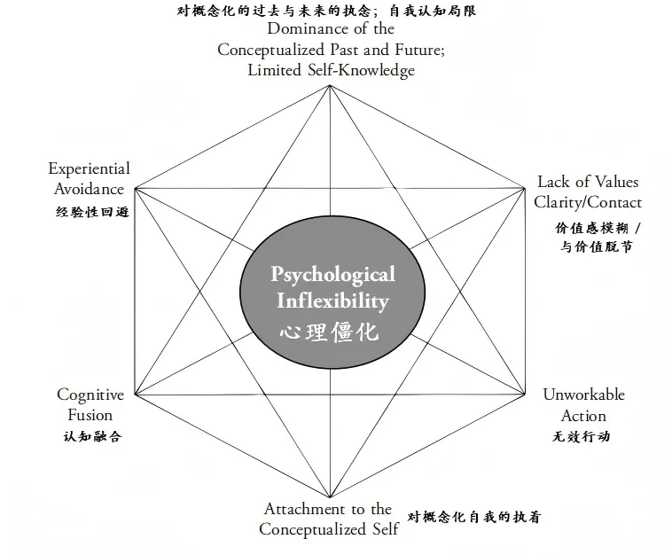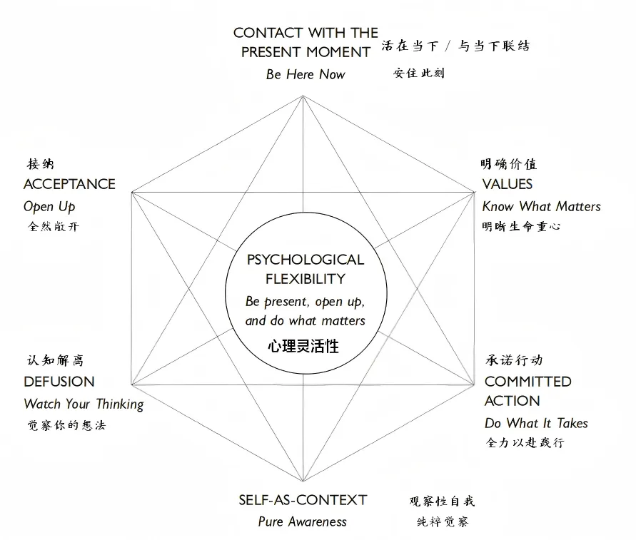 ACT所追求的六个“有生命力“的状态可以被"合并"成三个功能单元,如下图所示。
