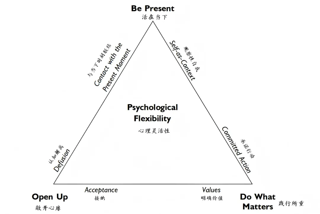 因此,心理灵活性是指"活在当下、敞开心扉、践行所重"的能力。