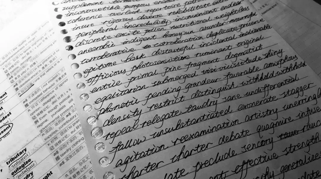 记单词的方法:一边看单词一边用手写。这样可以提升大家对单词的熟悉度,写完之后可以圈出不认识的或者是特别重要的单词,帮助之后回顾。