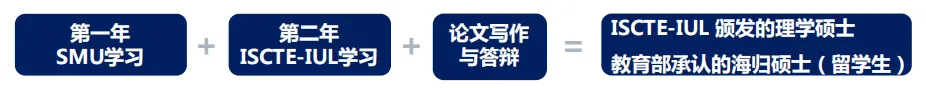 第二年,赴葡萄牙里斯本ISCTE-IUL攻读硕士,课程时间为一年,完成课程后,将有至少6个月的论文撰写、完成答辩和找工作的时间。 其中,毕业答辩及学位授予仪式需在葡萄牙里斯本ISCTE-IUL校内完成。