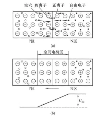 复合后,P区留下了带负电的固定受主离子(不能移动)。
