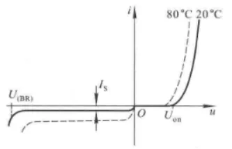 反向电压小于击穿电压时,只有很小的反向饱和电流(硅管nA级,锗管μA级)。