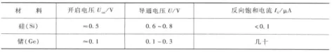 正常工作时的正向压降:硅管0.7V左右,锗管0.2~0.3V。