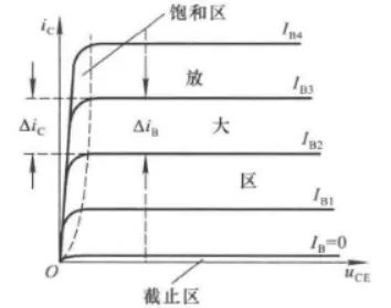 三极管的输出特性曲线(IC- VCE)是一族近似等间距的平行线,每条线对应一个IB。