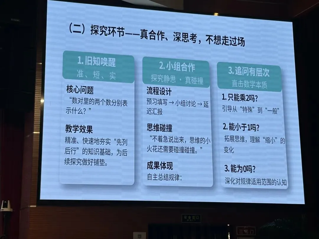 团队探讨“数学好玩”课程设计,阐述课程本质、设计初心,分享各环节思路及技术运用,反思不足并表达对优质数学课的追求。