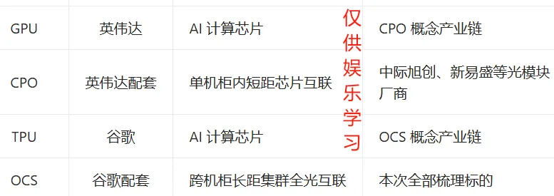 CPO(共封装光学):芯片封装级技术,把光模块和交换芯片集成在一起,解决单机柜内短距、高密度的光电转换问题。这个都熟悉了,学习了好几轮了哈哈哈...