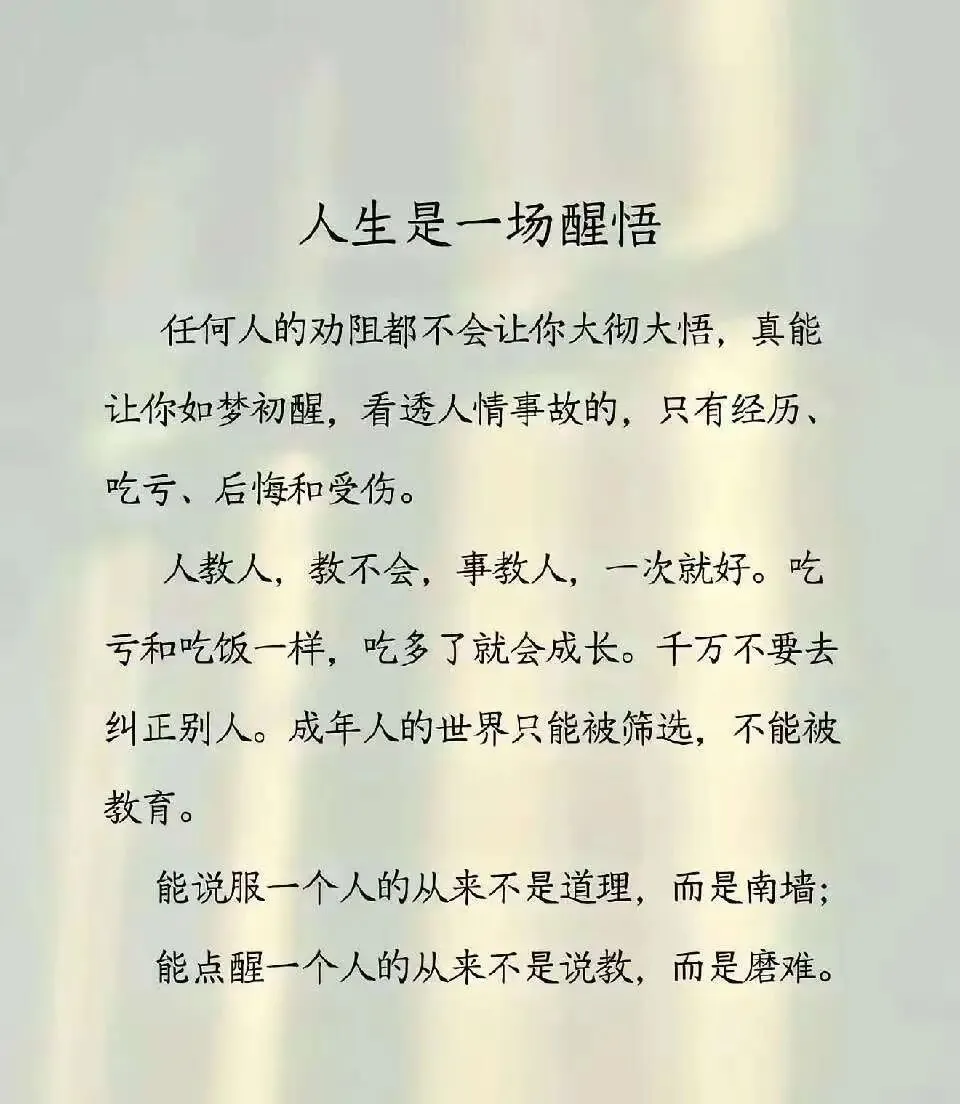 对于身后没有任何托举的普通人来说,如果你还没有觉察到父母身上巨大的认知局限,如果你还在通过做一个听话顺从的好孩子来获得他们的认可,那么你就会走上一条现在就可以看得到尽头的路。