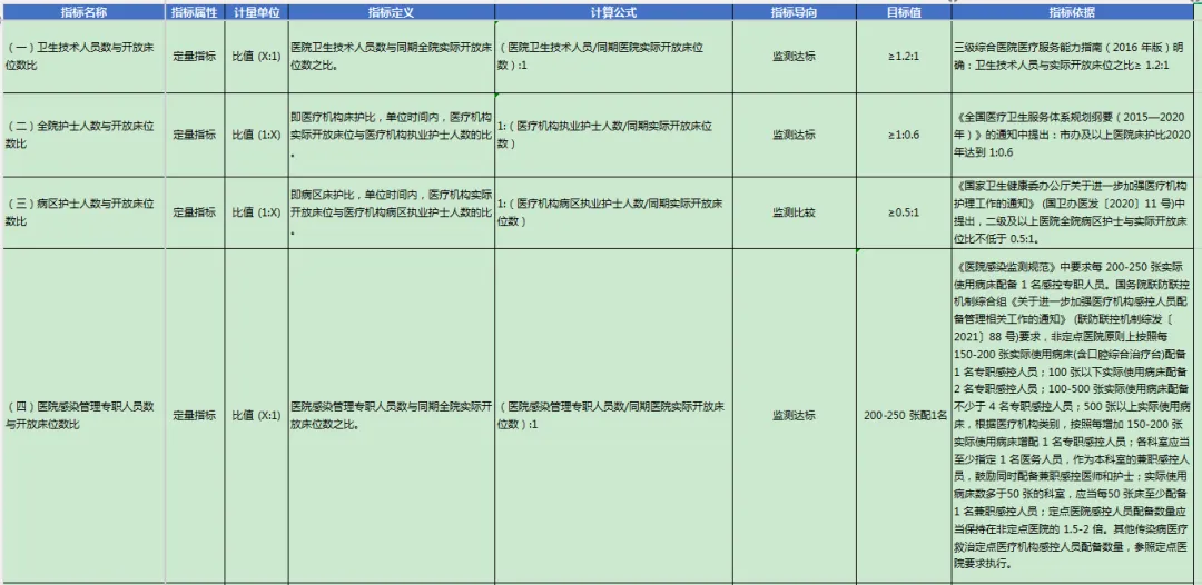 指标要求:每张床 ≥ 1.2个卫生技术人员(医生+护士+技师)