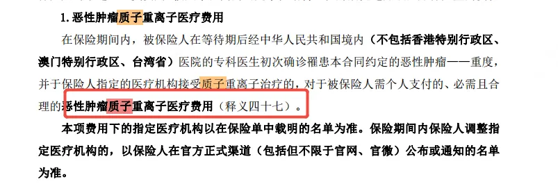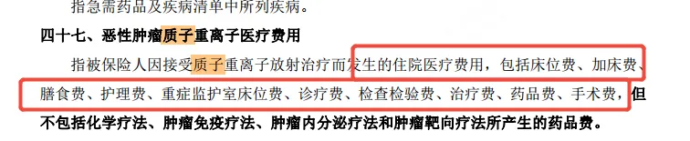 尊享26为例,对质子重离子的治疗费用,有明确释义,住院治疗费用,包含床位费、手术费、治疗费等。