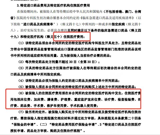 理赔路径,就是正常的理赔流程。囊括的医院:有两个,特约。特定进口药这个责任,本身扩展了用药这次对应的医疗费用,住院费等。