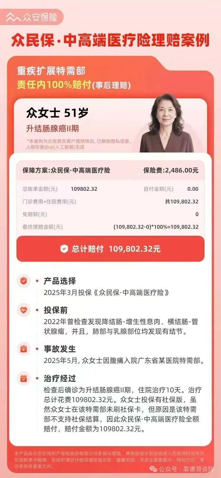女,40岁 众民保重疾,重疾+轻症+二癌,30万保额 2025-02-23投保 2025-08-15出险 肺癌,肺微小浸润性肺癌 重疾理赔30万 可以正常续保,目前已经续保。后续二癌责任有效,重疾和轻症不可再理赔。