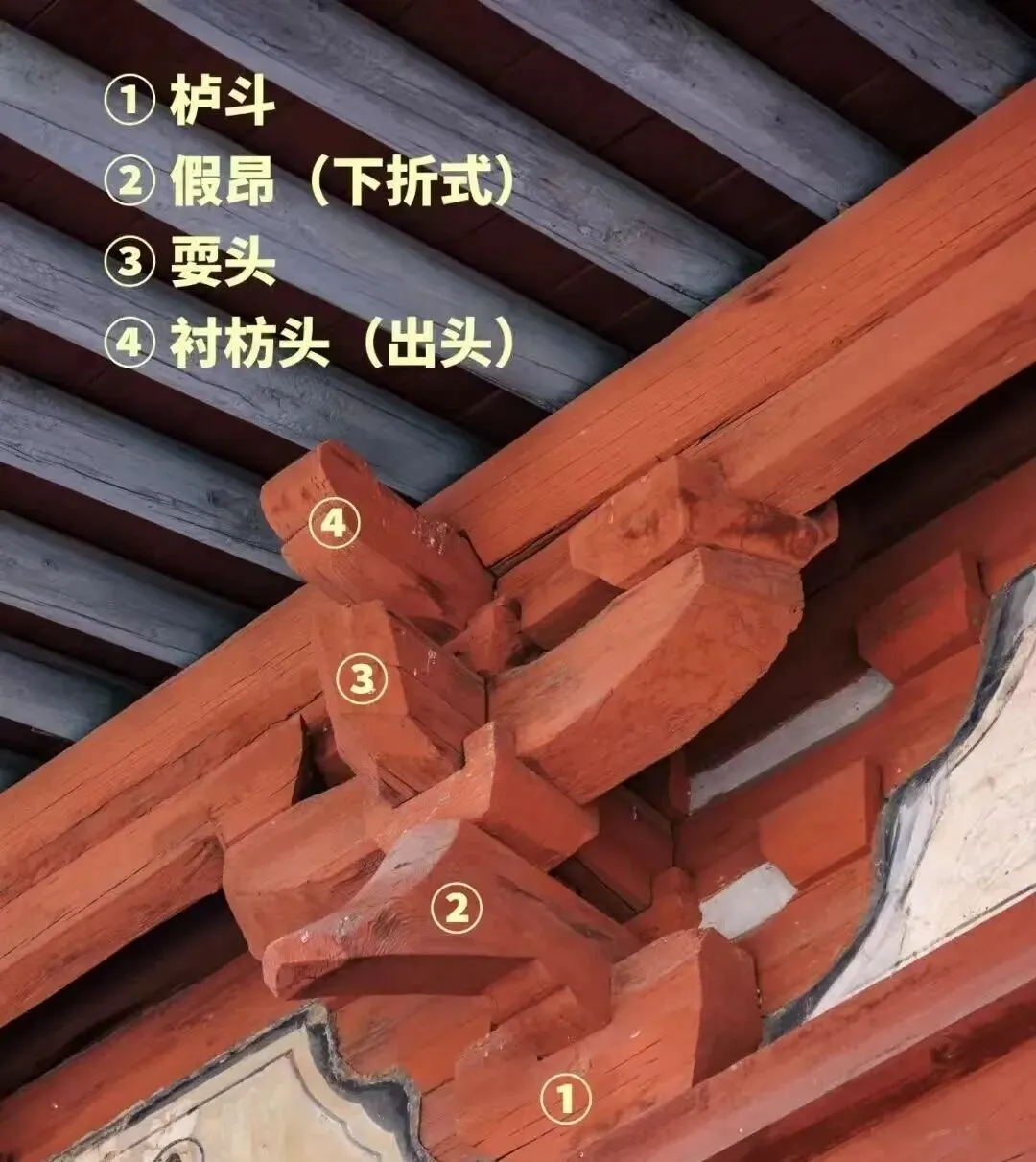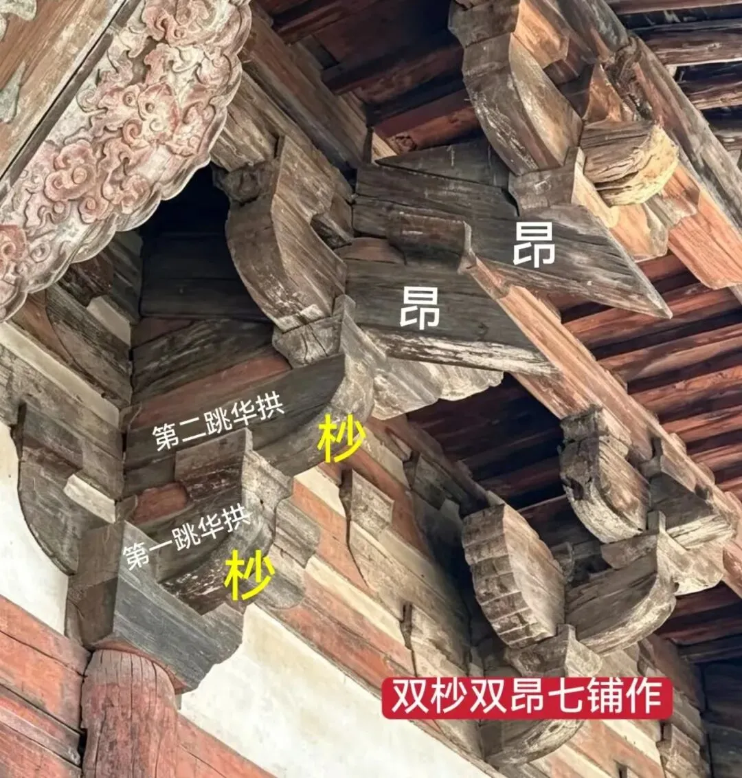 (注:昂出挑也计入跳数,多用于高等级殿堂斗拱的配置,在唐宋古建中常见,明清后多假昂。)