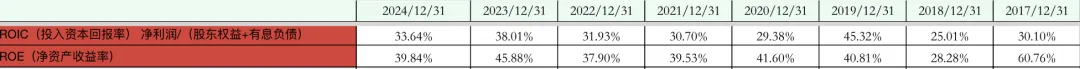 农夫有没有护城河?数据告诉我们当然有,如下图,ROIC 长期处于30% 附近,ROE 长期处于 40% 左右