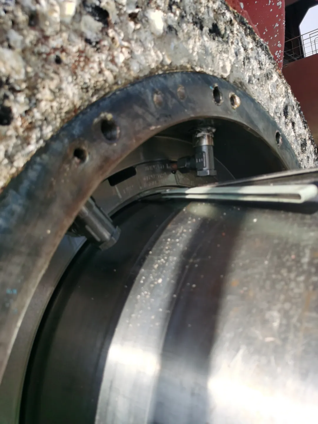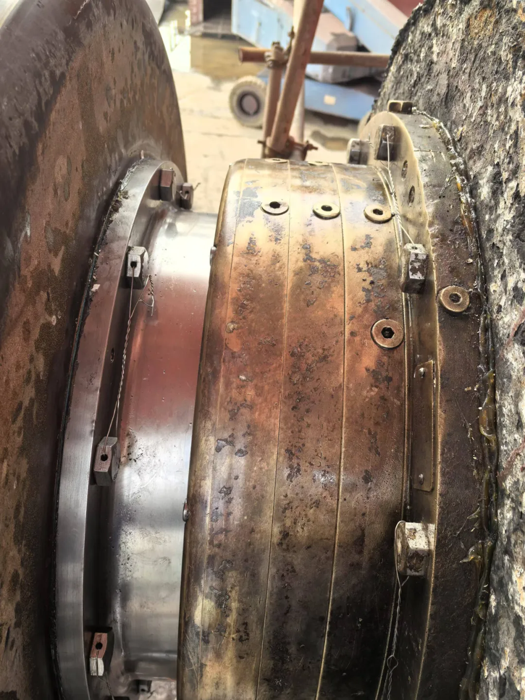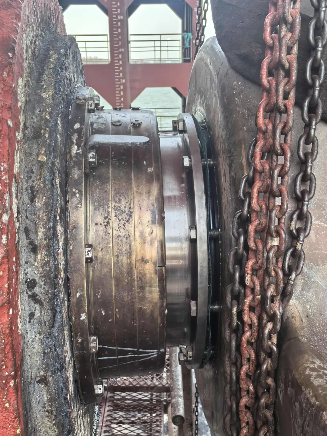 某轮坞修期间进行尾轴密封的拆卸检查,遇到了最易导致尾轴密封失效,固定螺栓异常磨损的根源——尾轴缠上了渔网。