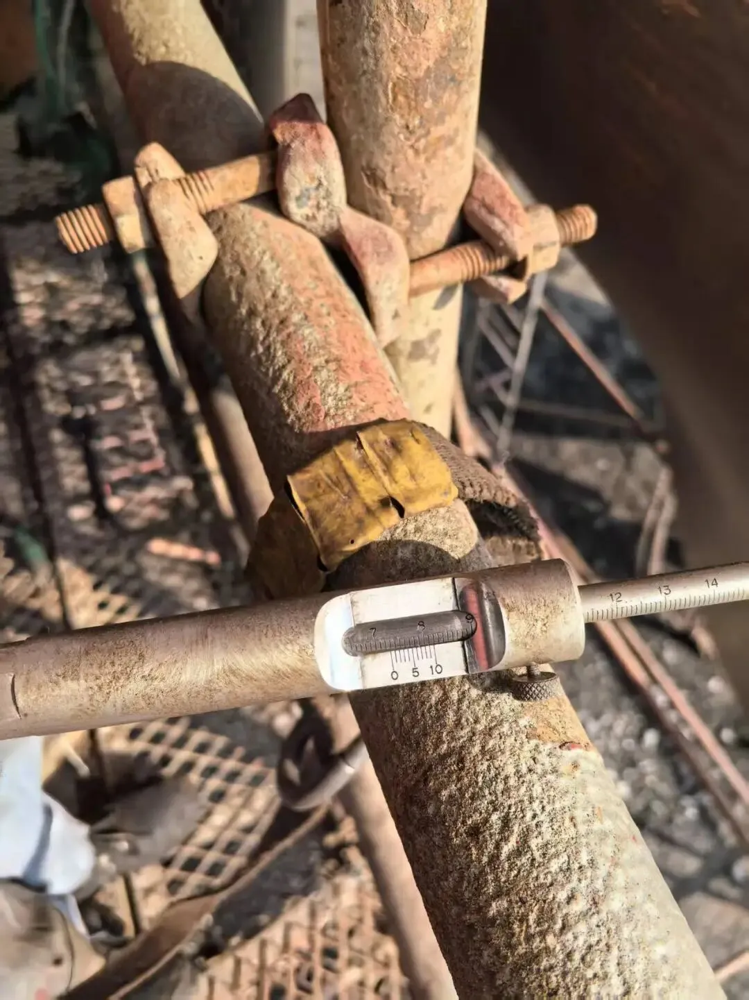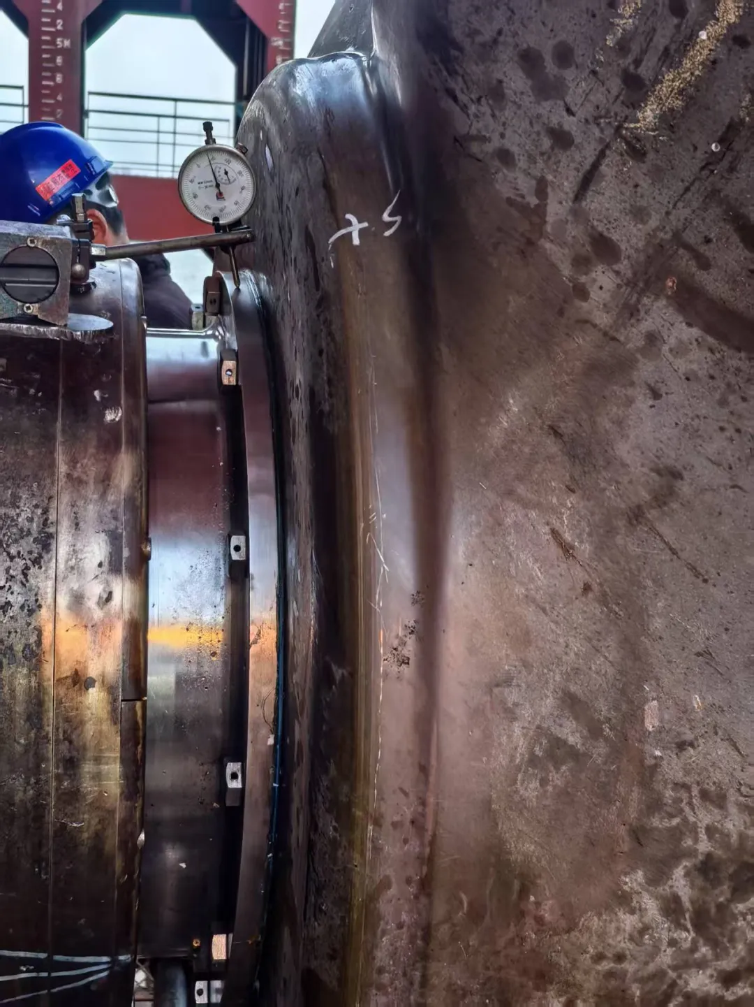 螺旋桨压进量测量,液压螺母上妥后焊接保险。尾轴下沉量测量72.8/73.6,白钢套跳动量测量0.14