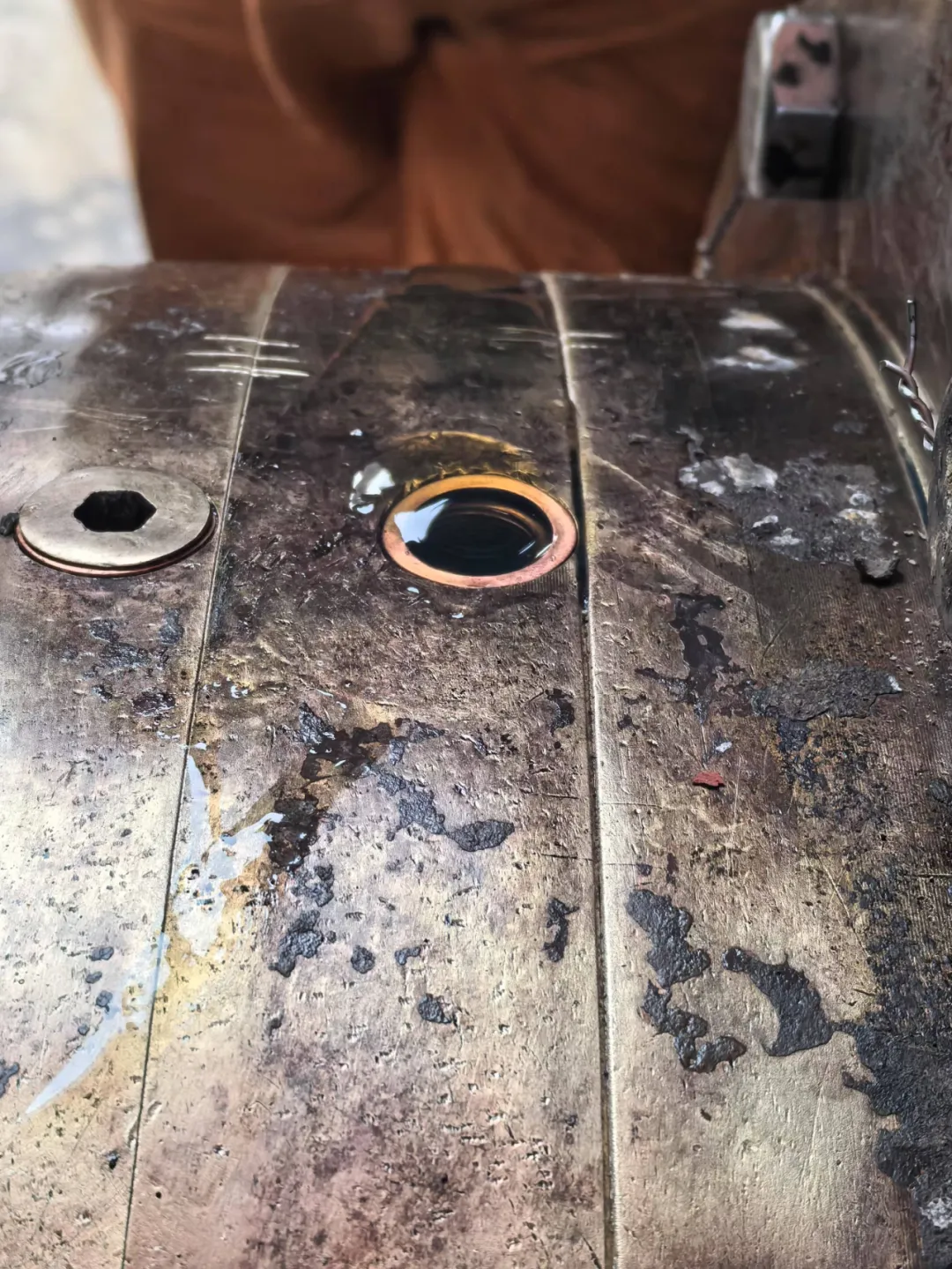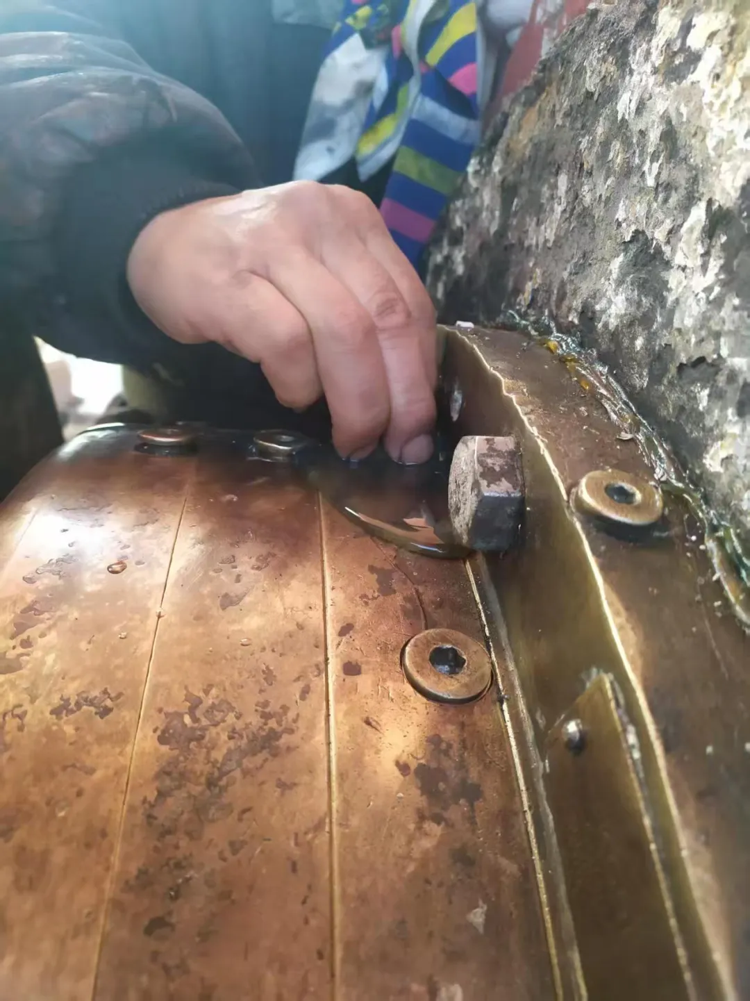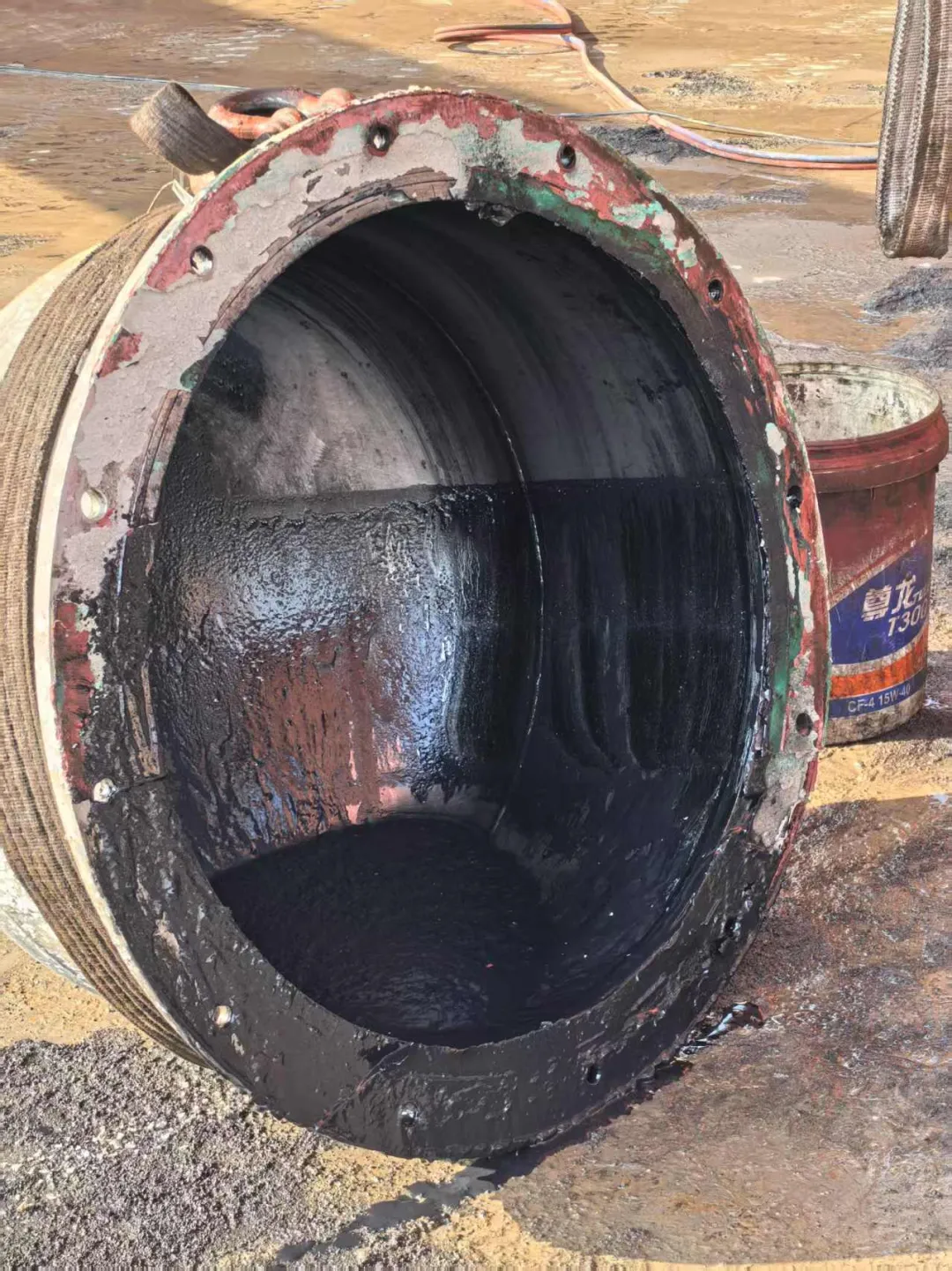 拆卸导流帽,将军帽,渔网帽内有大量积水,牛油液化发黑