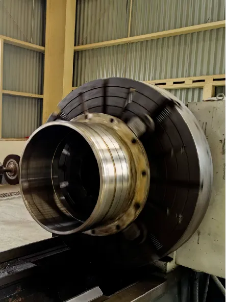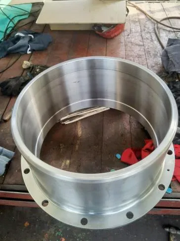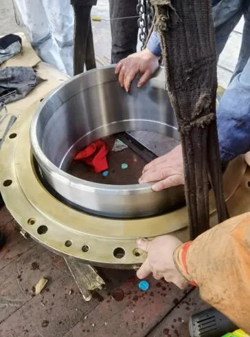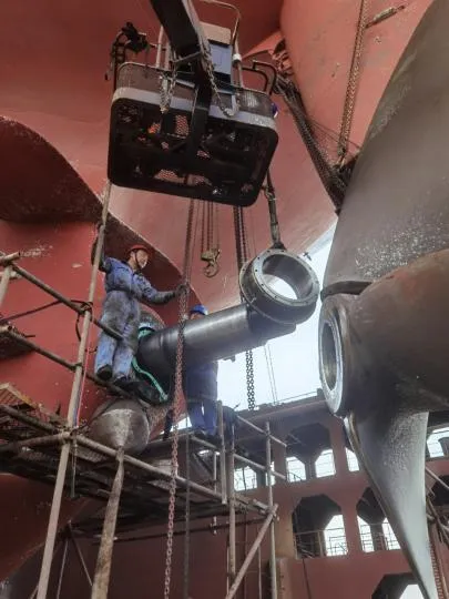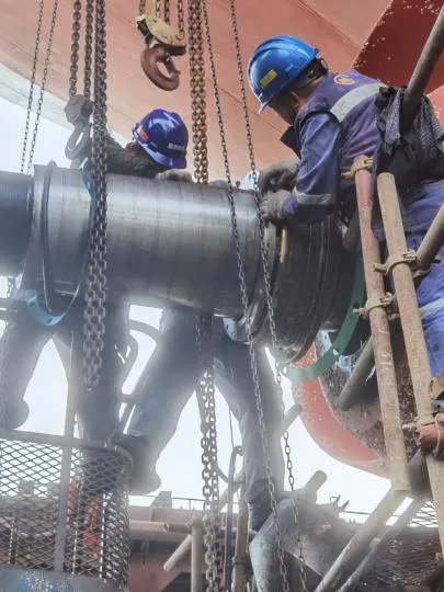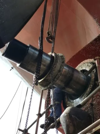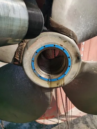 螺旋桨轴及各部位清洁后安装尾密封白钢套及螺旋桨,白钢套装配螺栓全部更换不锈钢新件