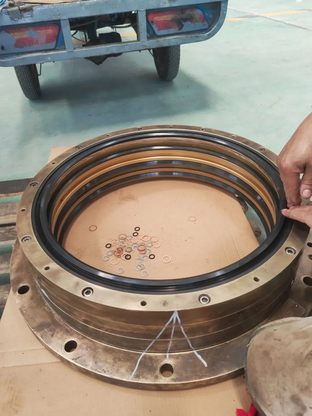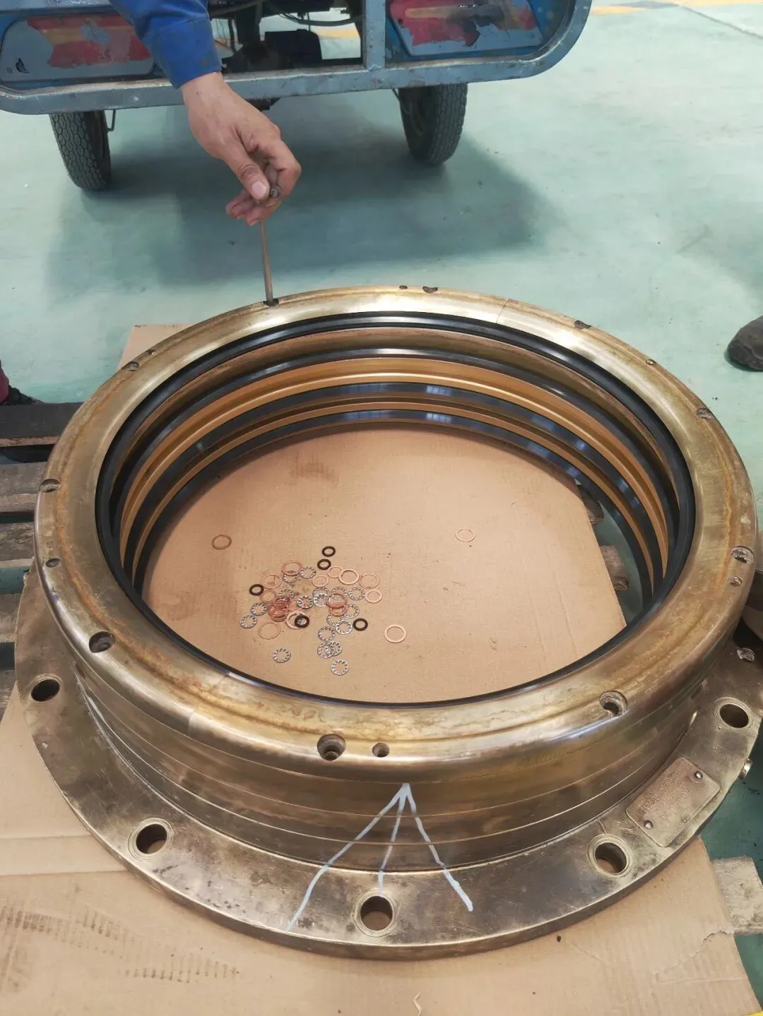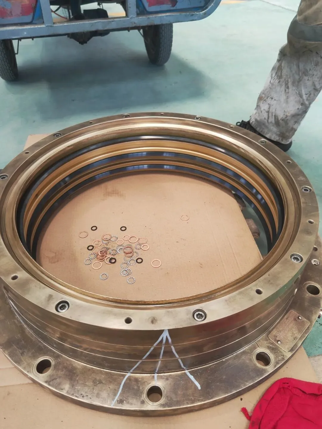 白钢套2mm垫床及加粗O-RING安装至螺旋桨平面