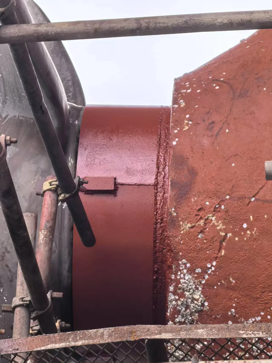 防渔网罩焊接安装完成,油漆