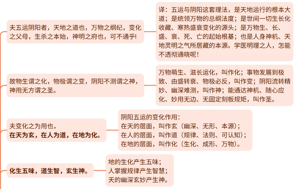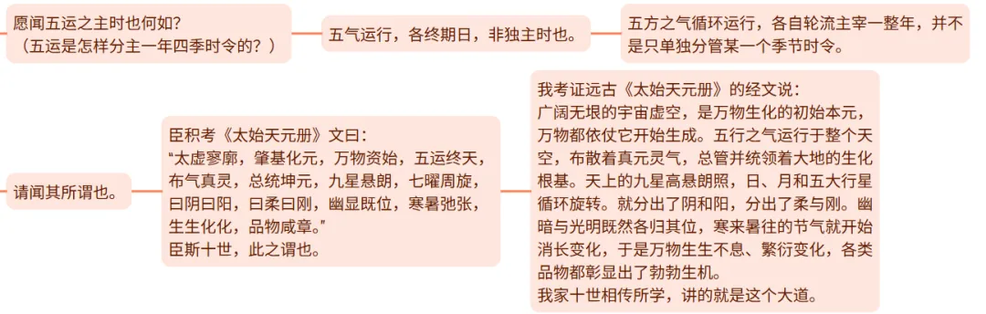 从这一篇开始,有关五运六气部分,卷十九中的:天元纪大论篇第六十六、五运行大论篇第六十七、六微旨大论篇第六十八,卷二十中的:气交变大论篇第六十九、五常政大论篇第七十,卷二十一中的:六元正经大论篇第七十一、(第72篇倪师有讲)本病论篇第七十三,卷二十二中的:至真要大论篇第七十四,这8篇内容在倪师的视频中没有讲,所以这八篇的标题就去掉了“人纪”,但还是把这些内容放在人纪黄帝内经合集中,方便查看。笔记是我自学的,并把翻译附到笔记中,本人也是第一次了解五运六气的内容,如有错误请指正。1、天有五行御五位,以生寒暑燥湿风;人有五脏化五气,以生喜怒忧思恐。论言五运相袭,而皆治之,终期之日,周而复始,予已知之矣。愿闻其与三阴三阳之候,奈何合之? (上天有木、火、土、金、水五行,统御着东、南、中、西、北五方之位,从而产生寒、暑、燥、湿、风五气;人体有肝、心、脾、肺、肾五脏,化生五脏之气,从而产生喜、怒、忧、思、恐五志。 古医论说,五运之气相互承袭、循环主持岁运,到一年终了,又周而复始;这些我已经懂了。 希望听听五运是怎样与三阴三阳的六气证候相结合的?)补充:
