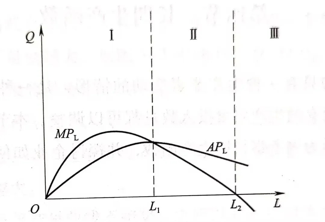 劳动投入的第二阶段(可变生产要素的合理投入区):劳动的投入使平均产量大于边际产量,且边际产量>0;