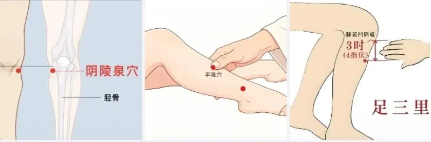 🔥 “艾灸”足三里、丰隆、阴陵泉 :每日温和灸。