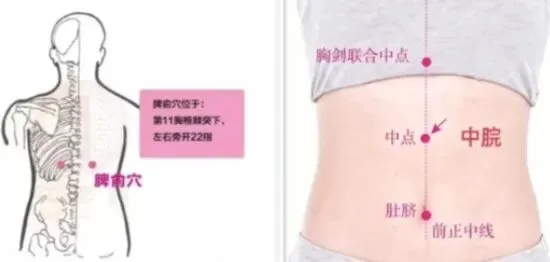 → 中脘、足三里、脾俞、阴陵泉 :每日或隔日温和灸。