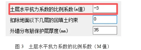 对侧向非完全嵌固的情况,可输入一个正的m值。程序对回填土的侧向约束用附加在地下室的侧向刚度来表示。当约束越大,附加的刚度也越大,反映在结构上的变形越小。