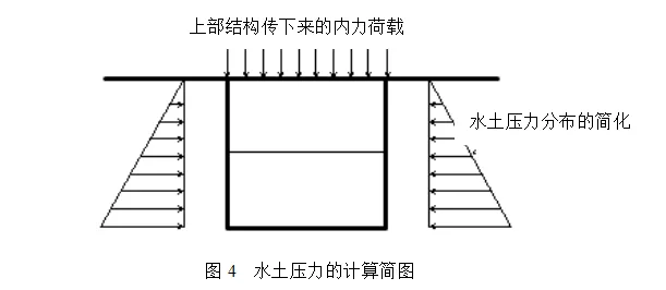 下图为水土压力的计算简图, 水土压力沿楼层高度为梯形(或三角形)分布。