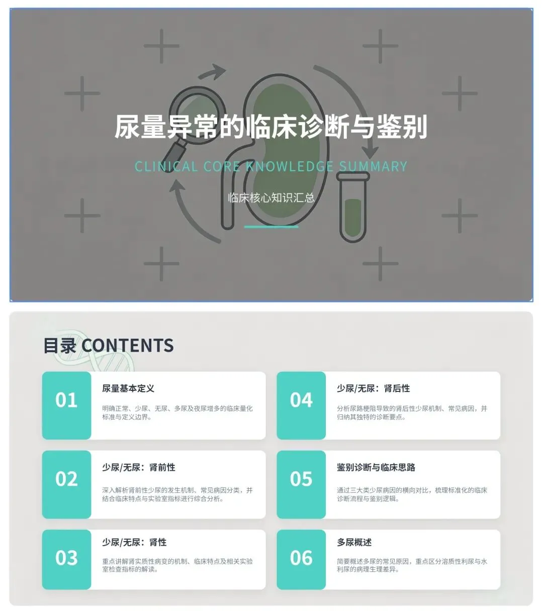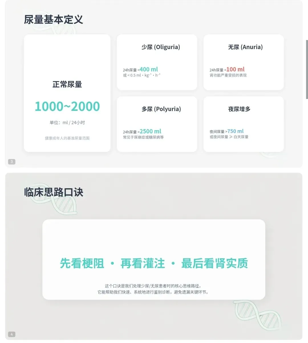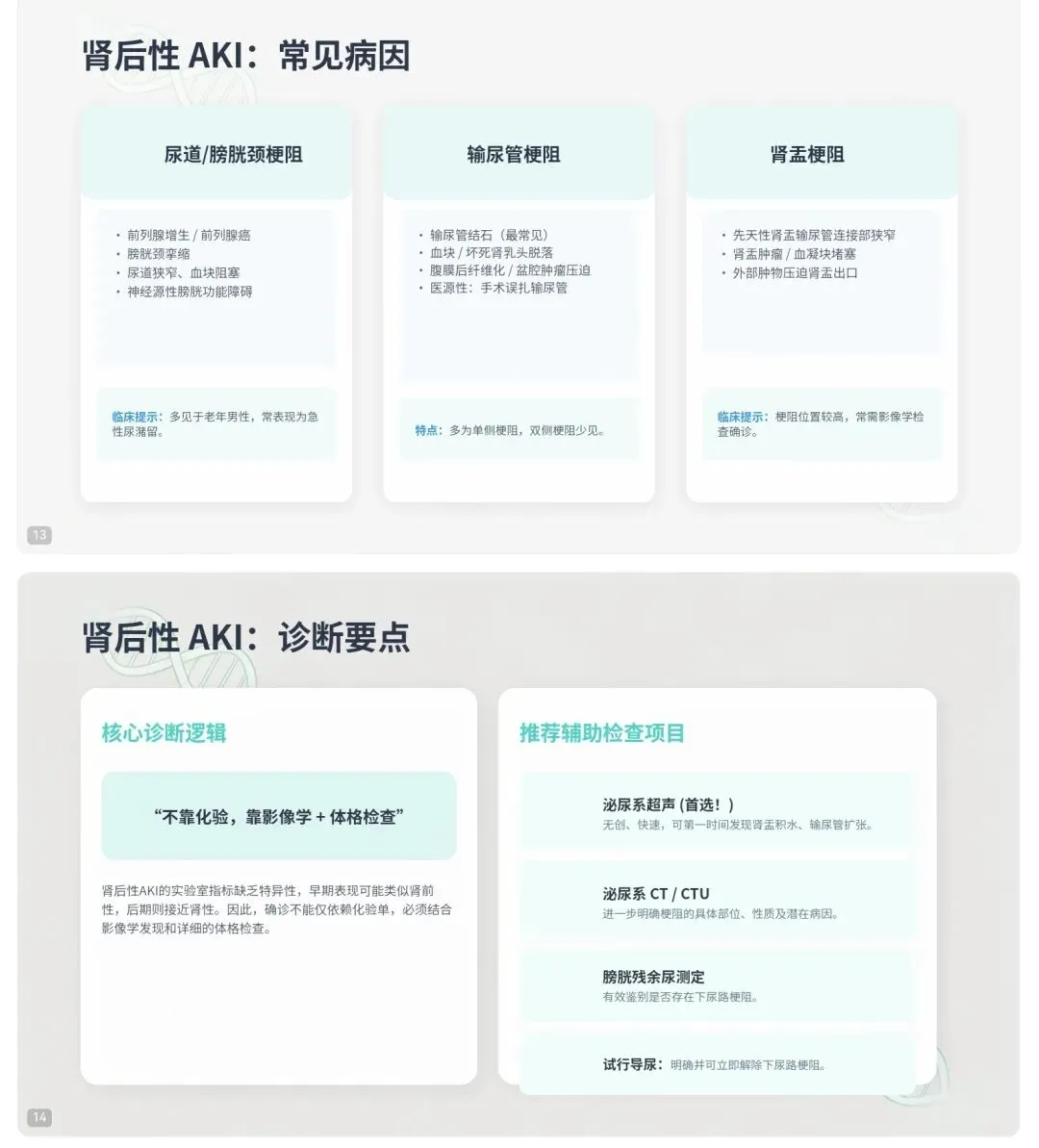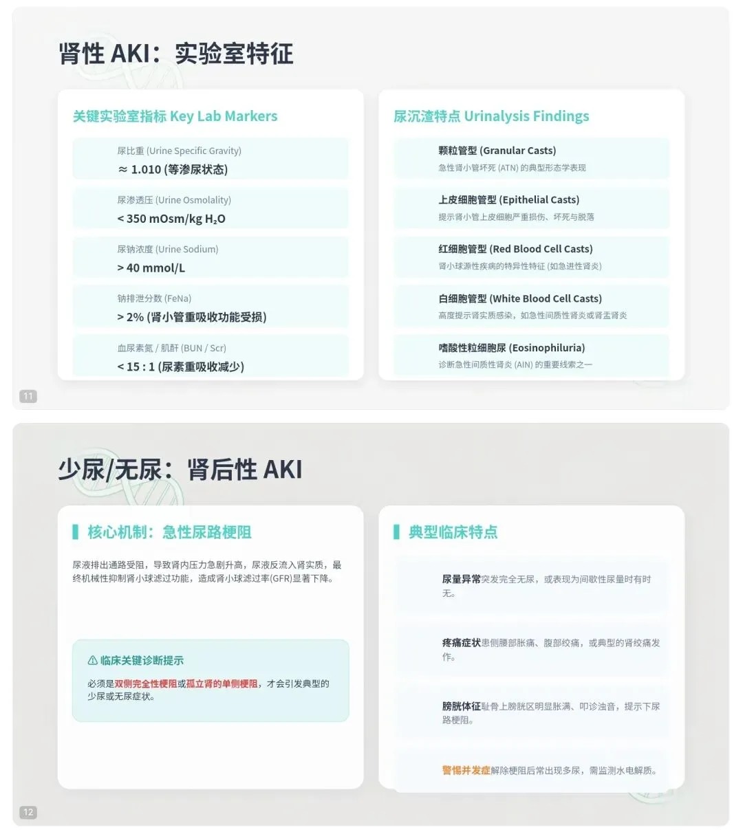 三大病因:肾前性 → 肾性 → 肾后性