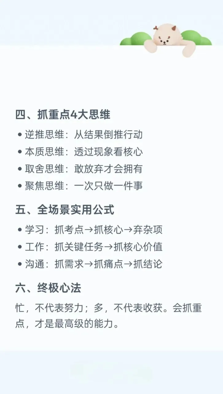 学会抓重点,一生不瞎忙。
