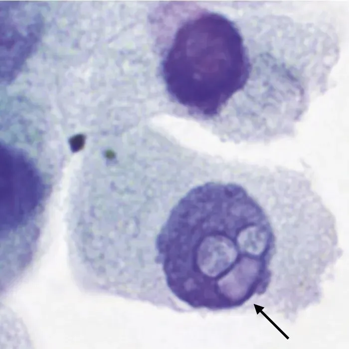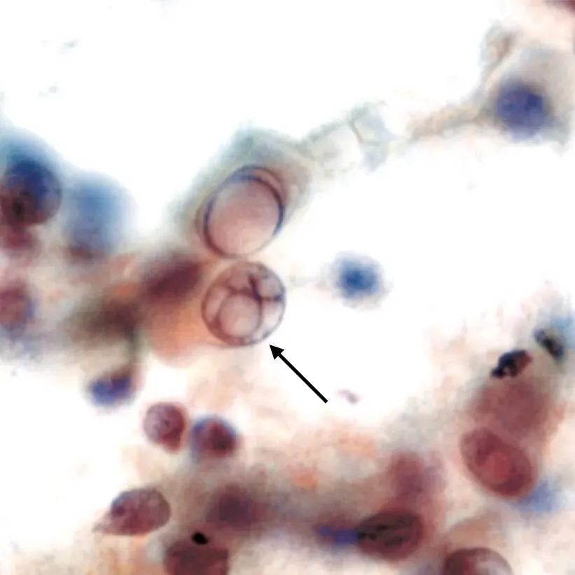 因此,在甲状腺FNA中,发现肥皂泡样包涵体对诊断高细胞亚型甲状腺乳头状癌很特异。但是,肥皂泡样包涵体比较少见,仅在少数病例中发现。