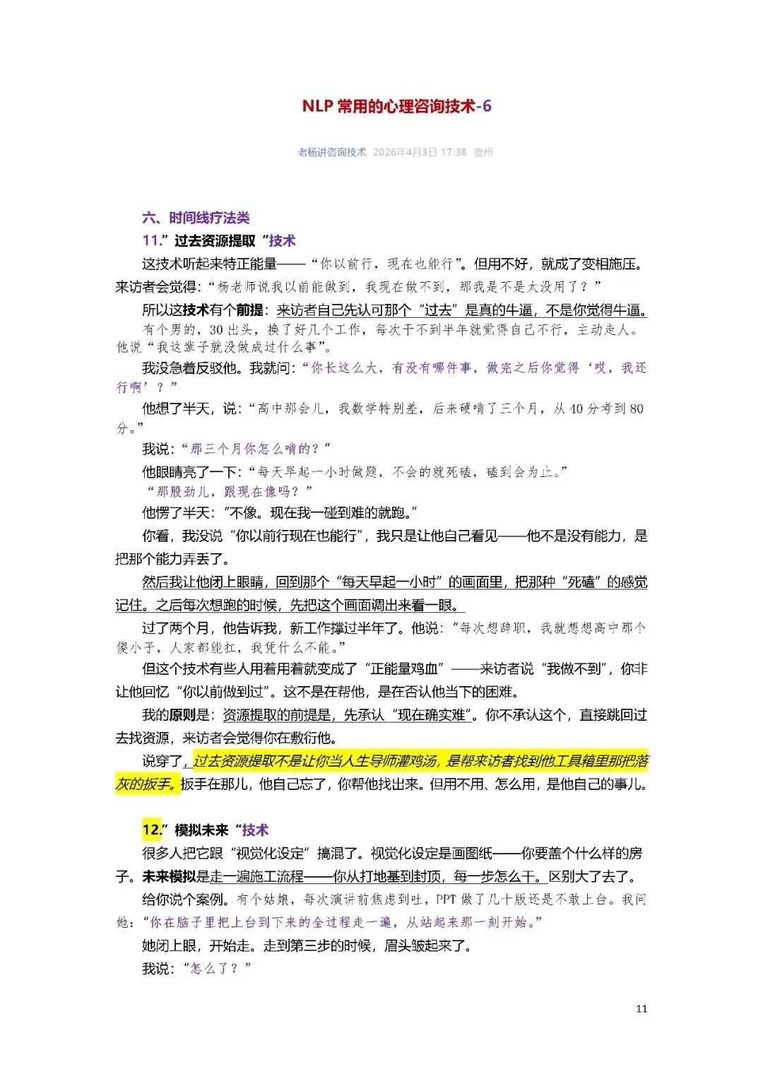 六、时间线疗法类:11.”过去资源提取“技术12.”模拟未来“技术七、抽离与结合类:13.”结合“技术14.”抽离“技术