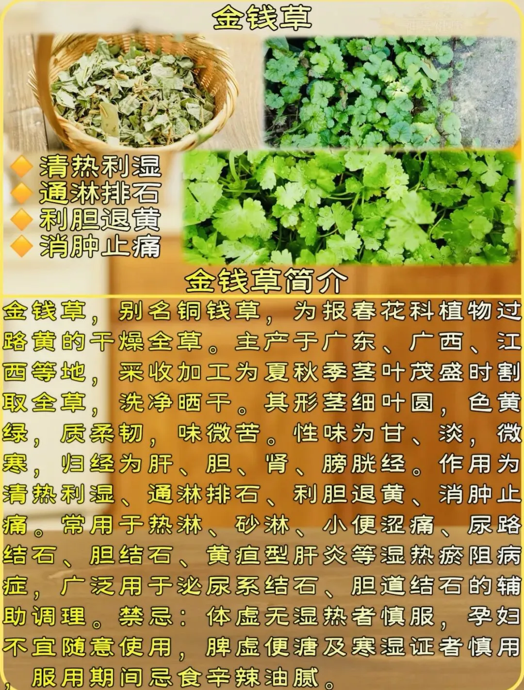 金钱排石化结石,茵陈退黄要药知。