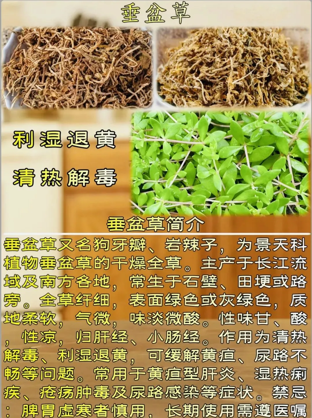 垂盆草凉解毒好,六味退黄各擅姿。