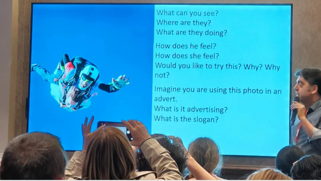 在 2026 年的当下,John 也提到了技术的影响。他建议让学生尝试写 AI Prompts 来生成图片。Prompts写的越好的学生,AI为其生成的图片也越好。这不仅练习了精准写作,还培养了学生分辨真实与虚构的意识。