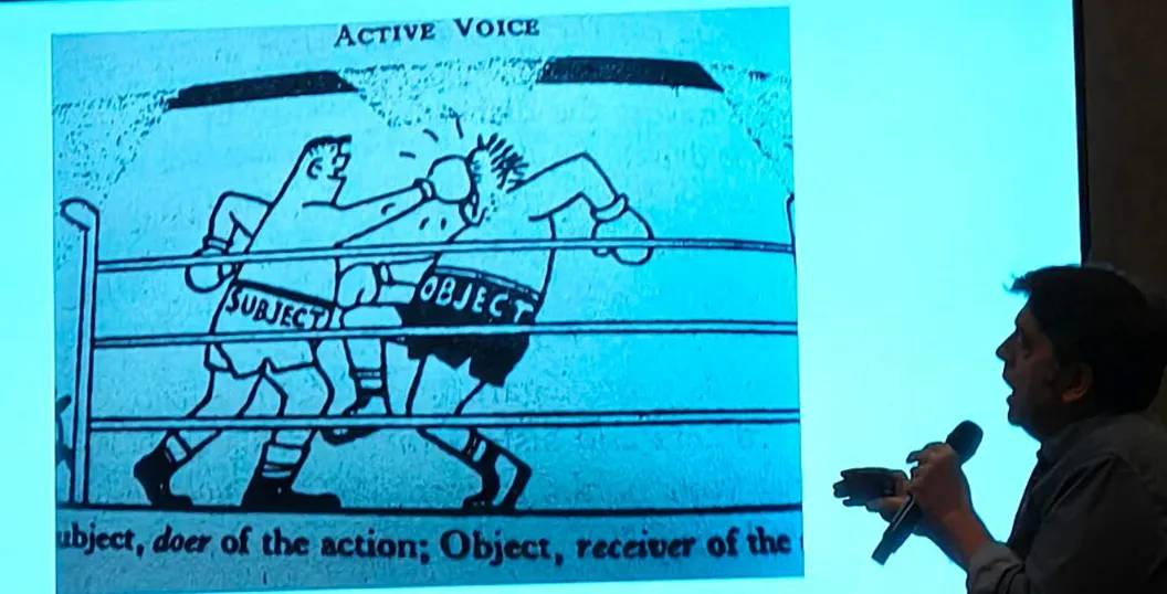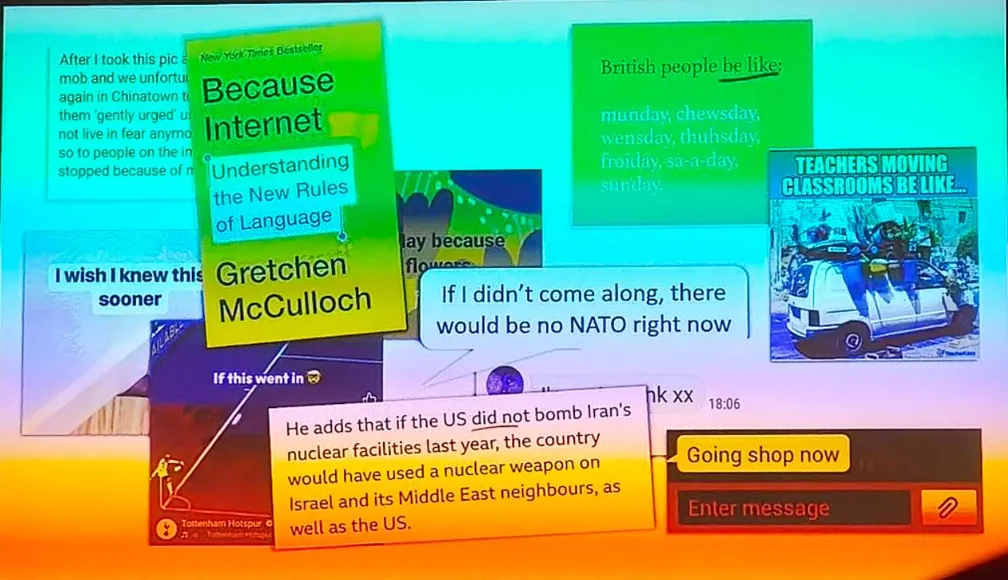 Jon Hird 开场就抛出了一个尖锐的问题:是字典和语法书定义了语言,还是母语者的习惯定义了语言?
