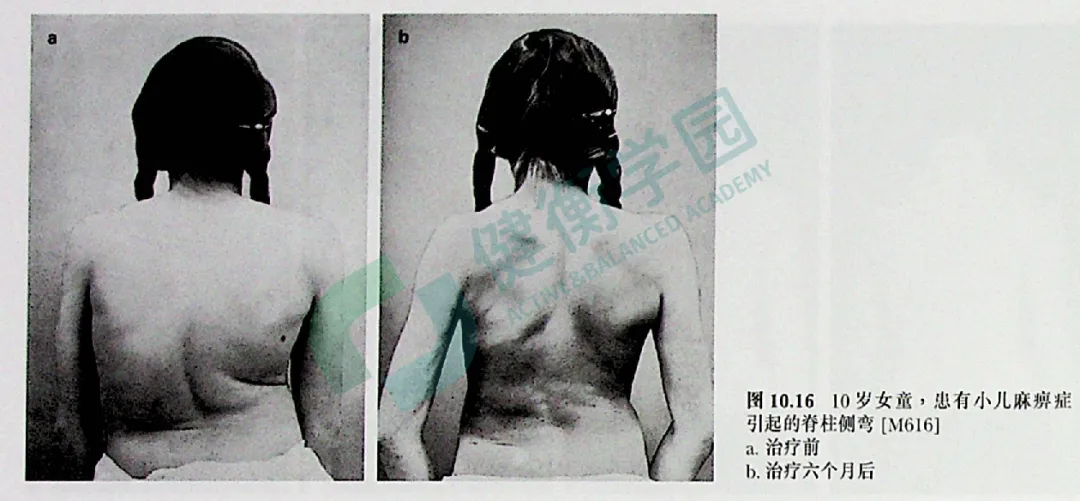 10岁患者,小儿麻痹症引起的脊柱侧弯