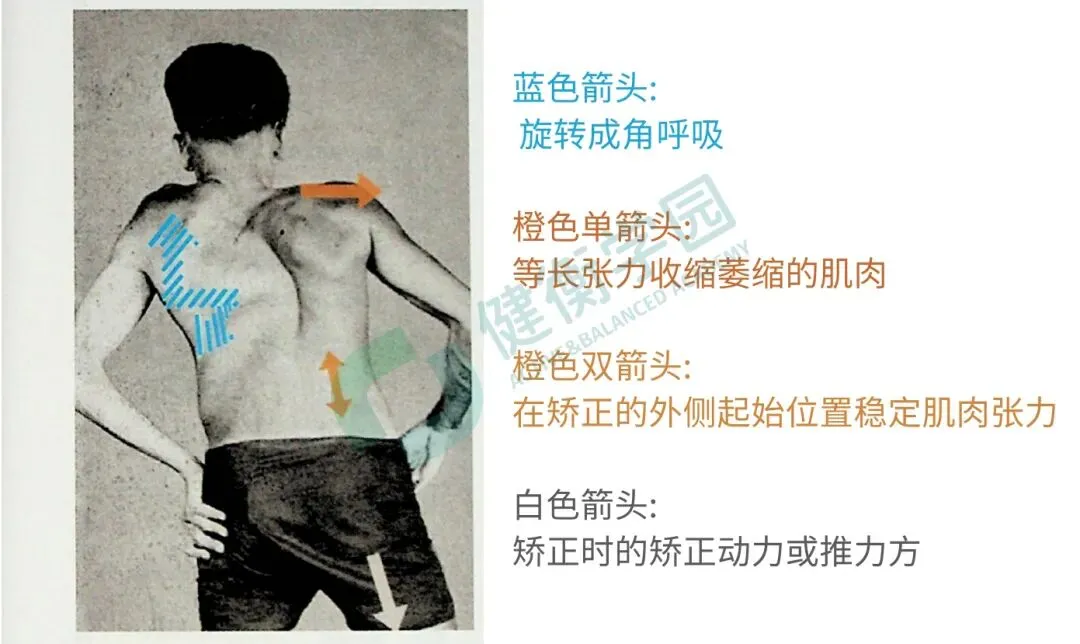 在人体解剖学允许的范围内锻炼肌肉,调整骨骼节段排列,逐步矫正脊柱侧弯导致的躯干畸形,使其尽可能接近正常状态。
