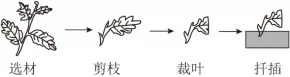 将插条分别置于不同空气湿度的环境中进行扦插,其他条件相同且适宜。