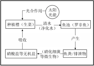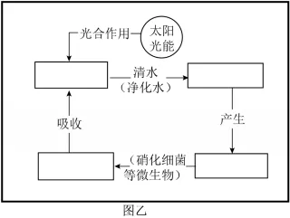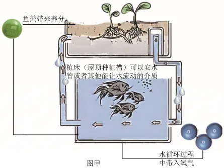 小组选择了罗非鱼(耐低氧、生长快)和生菜(需氮量大)作为搭配。系统中的硝化细菌是关键,它们能将有毒的氨转化为无毒的硝酸盐。同学们绘制了系统设计图如图甲。