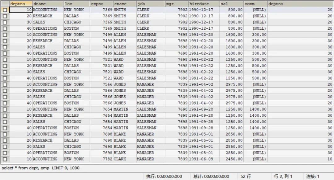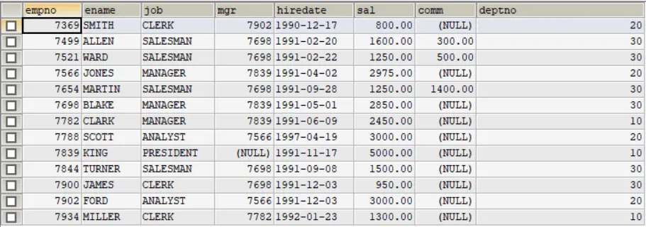SELECT * FROM dept, empWHERE emp.deptno = dept.deptno