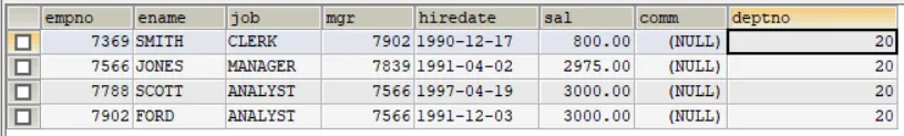 SELECT *FROM empWHERE deptno = 20