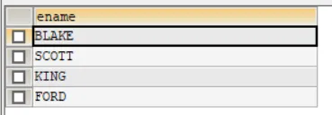 -- 方法一,使用ANY,就是比其中任意一个进行比较SELECT ename,sal,deptnoFROM empWHERE sal> ANY(SELECT salFROM empWHERE deptno = 30)