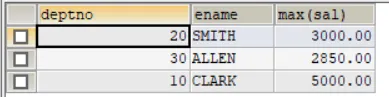 SELECT deptno, ename,MAX(sal)FROM empGROUP BY deptno